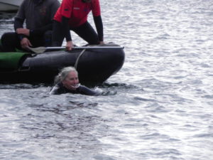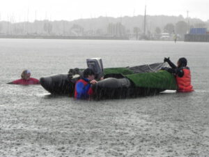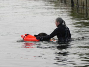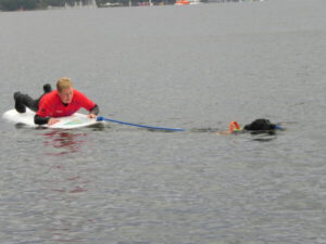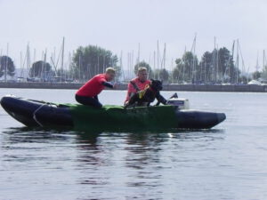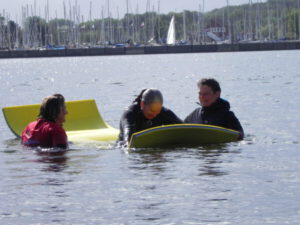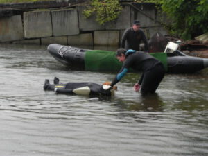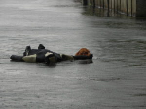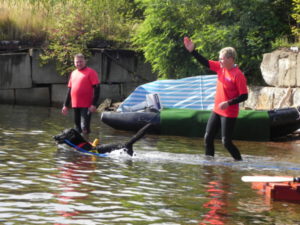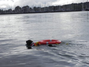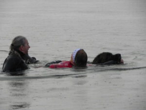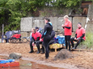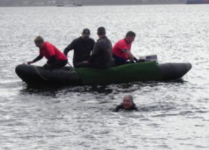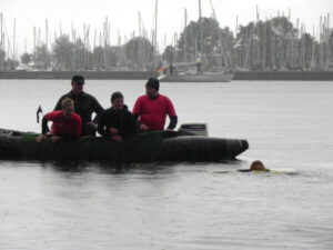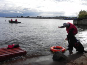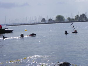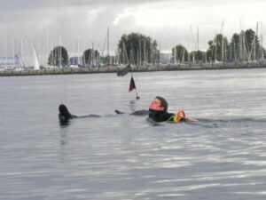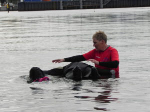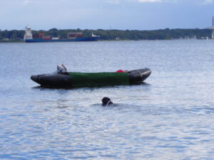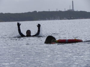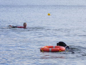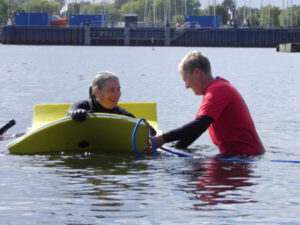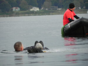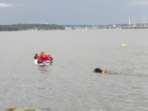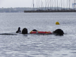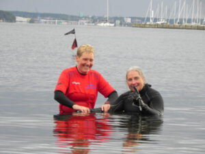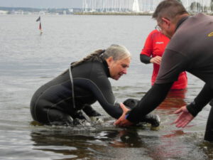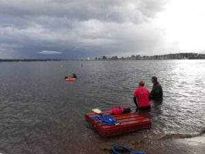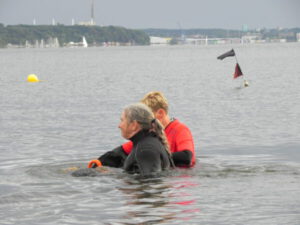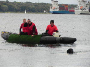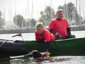 Jedes Team wurde tatkräftig unterstützt und auch das letzte Team wurde im teilweise strömenden Regen genauso gearbeitet wie das erste Team. Obwohl wir einen langen Tag am und im Wasser hatten und zum Schluss alle gefroren haben (Wassertemperatur bei ca. 17° C) war die Stimmung super, alle haben sehr gut zusammengearbeitet, wir haben viel gelacht, neue Übungen gesehen und trainiert, wieder viel gelernt und einen gewaltigen Motivationsschub für die nächste Saison erhalten. Unsere junge, unerfahrene Truppe hat tolles Feedback von der erfahrenen Wasserarbeitsfamilie erhalten. (Was uns im GSV Friedrichort sehr stolz macht
