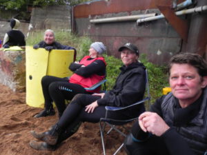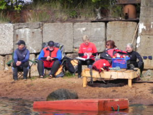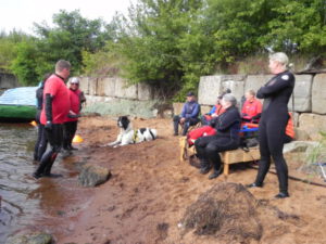 Nach dem Training haben wir uns zu einem kleinen Picknick zusammengesetzt. Jeder hatte etwas Leckeres dabei. Kathrin und Birgit waren bemüht während des Trainings ein paar Notizen zu den einzelnen Teams zu Papier zu bringen (manchmal schwierig, weil sie auch als Helfer viel im Wasser waren). Beim gemeinsamen Essen wurde dann u.a. jedes Team noch einmal besprochen.