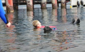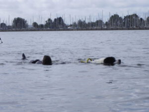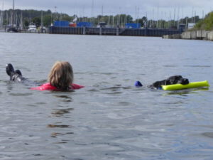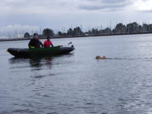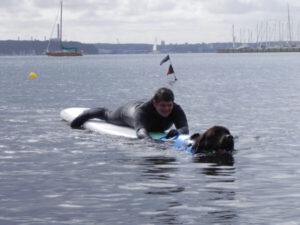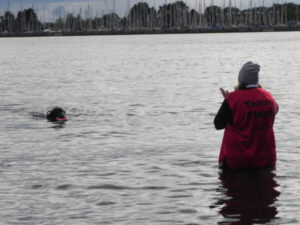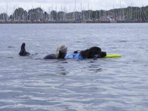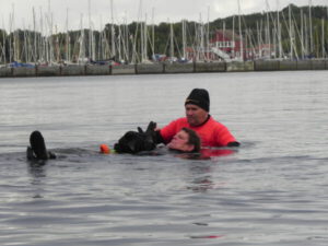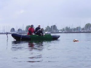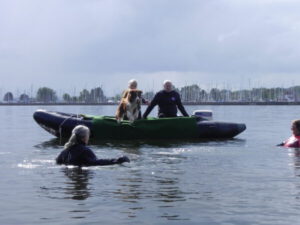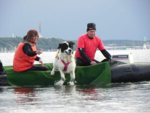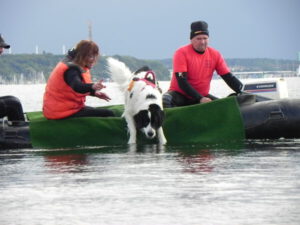 Wir haben uns am Samstag, 17.09.2022, zum 2. gemeinsamen Wasserarbeitstraining der Nordklubs (Hundesportverein Bad Kleinen (Schweriner SeeHunde), SHV Todtglüsingen und GSV Friedrichsort) des DVG getroffen. Nachdem das letzte Training bei den Schweriner SeeHunden am Schweriner See stattfand, hatten wir diesmal die Vereine bei uns in Friedrichsort an der Kieler Förde zu Gast. Unsere Trainingsgruppe wurde mit Yvonne von der Wasserarbeitsgruppe Sachsen und unserem Überraschungsgast Antje Neef von dem Hundesportverein Ederbergland kurzfristig erweitert. Über Antje haben wir uns ganz besonders gefreut, weil sie zusätzlich unsere neuen Wasserarbeitsgeschirre für die Hunde und neue Dummys persönlich vorbeigebracht hat. Vielen Dank – die sehen super aus.